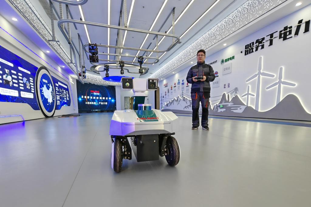 3月28日,在雄安科創中心中試基地,普龍科技有限公司工作人員在展示巡檢機器人。新華社記者 楊世堯 攝