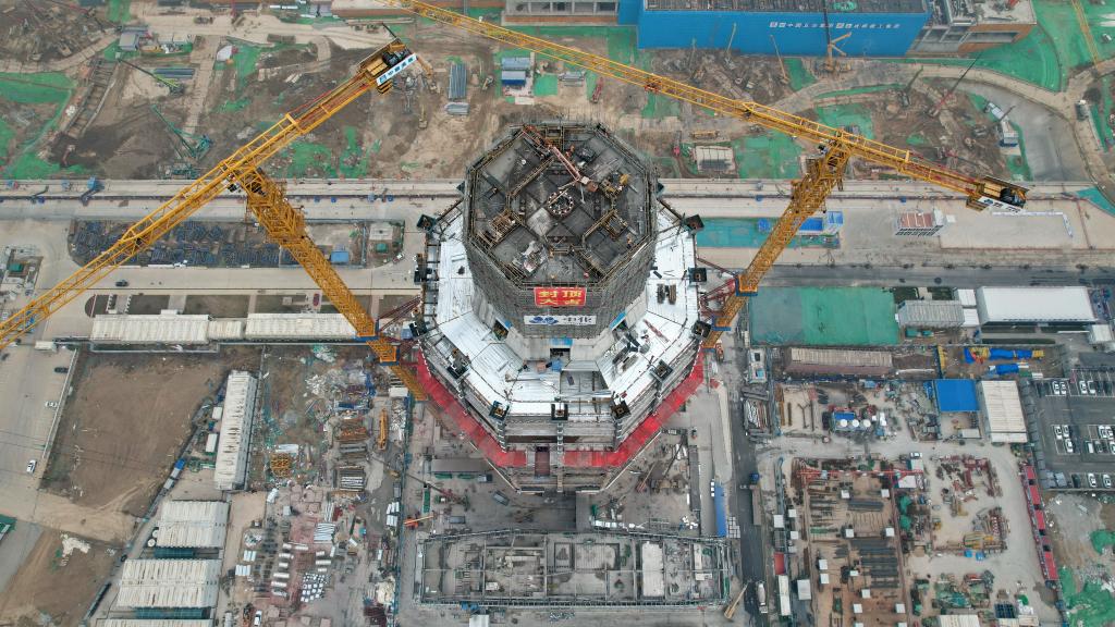 3月27日拍攝的中國中化大廈建設現場(無人機照片)。新華社記者 牟宇 攝