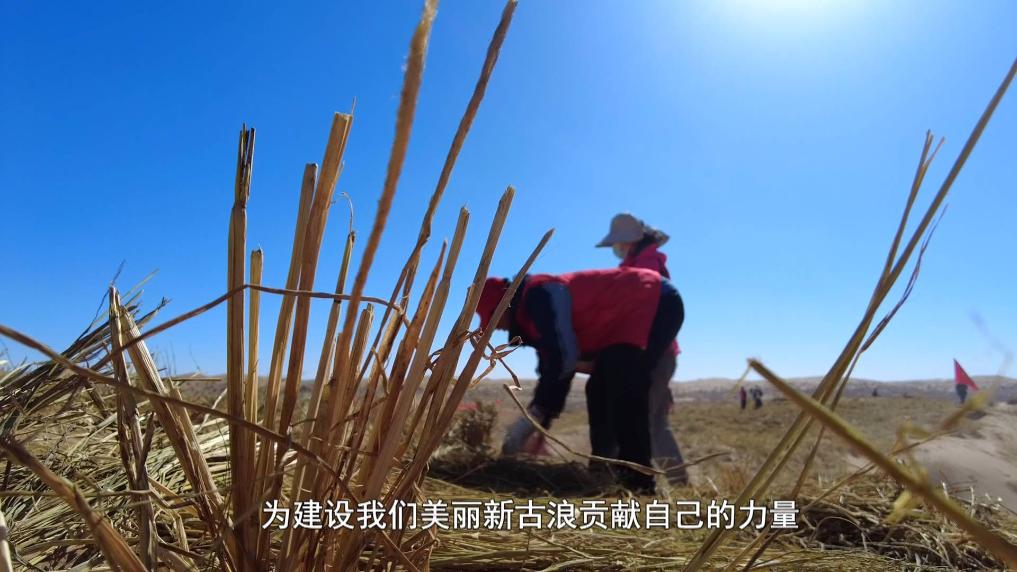 這些金色的草方格像是給流動的沙丘圍上了柵欄,可以有效固定沙子的流動。等到來年春天,再在板結的草方格里種上沙生植物,就能起到固沙、治沙的作用。