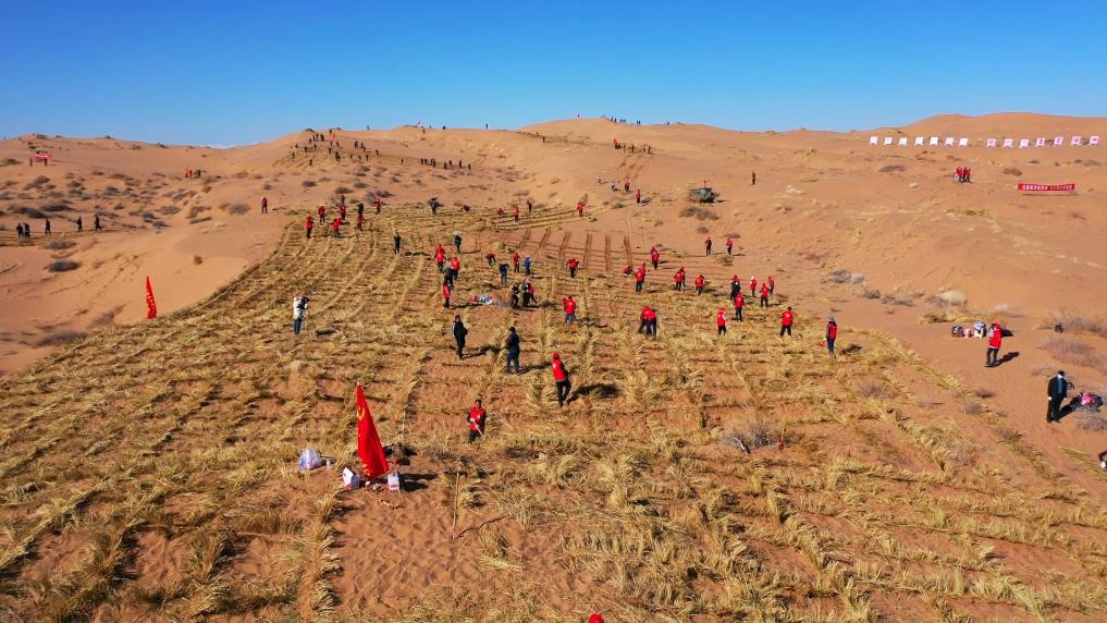 壓沙治沙又一春,增綠家園不停歇。仲春時節,在中國第四大沙漠——騰格里沙漠南緣,甘肅省武威市古浪縣2024年春季義務壓沙活動如約啟動。自2012年起,古浪縣每年都會組織當地廣大干部職工和群眾,開展春秋兩季的義務壓沙活動,守護家園,增綠家鄉。