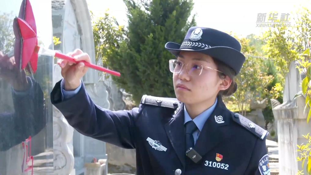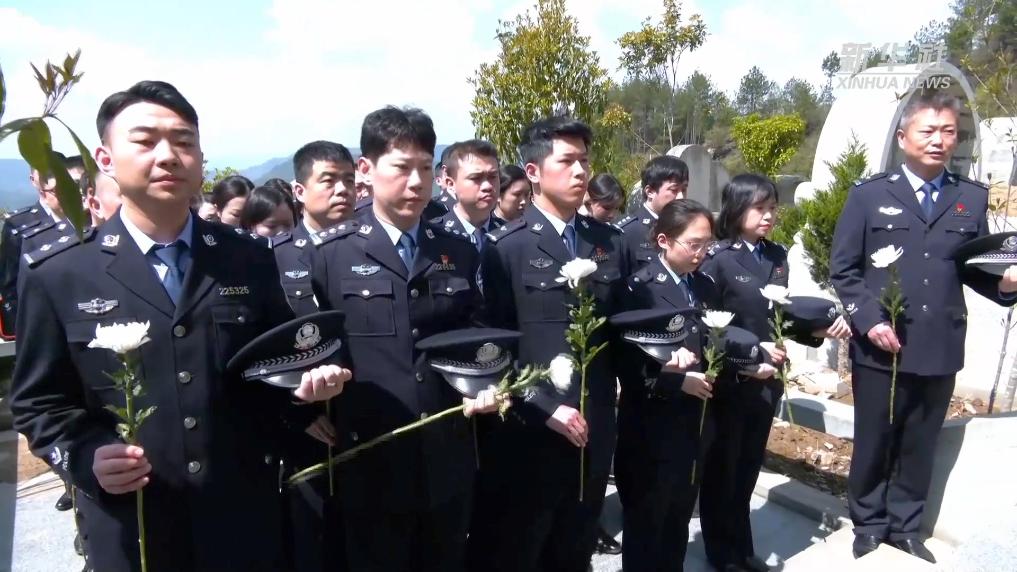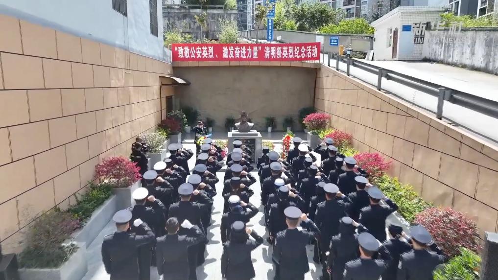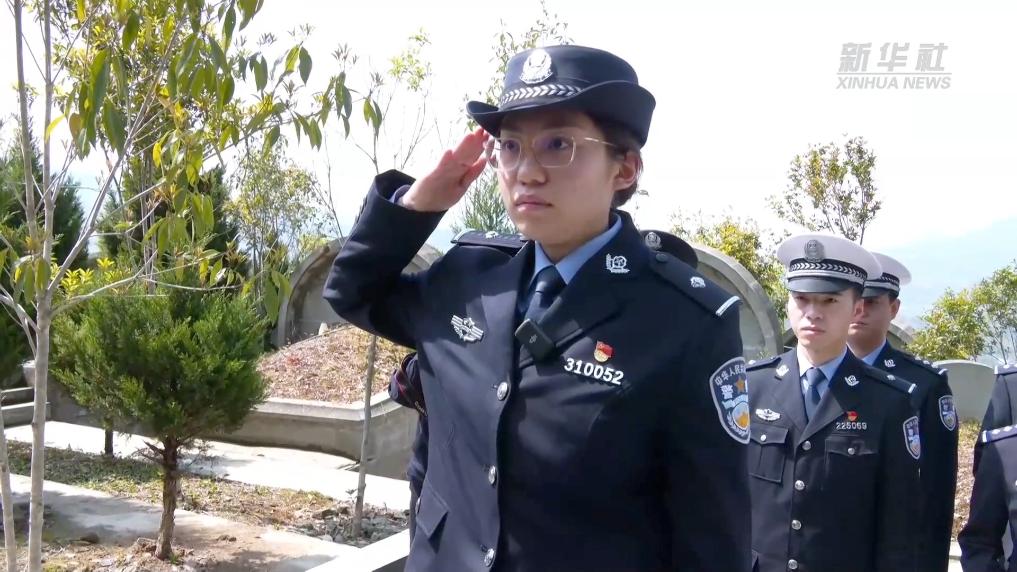 清明節前夕,民警代表來到重慶市石柱土家族自治縣三河鎮齊豐山陵園和馮中成烈士銅像前開展清明祭英烈紀念活動。馮中成的女兒馮心言也從工作地回到石柱,祭奠父親。