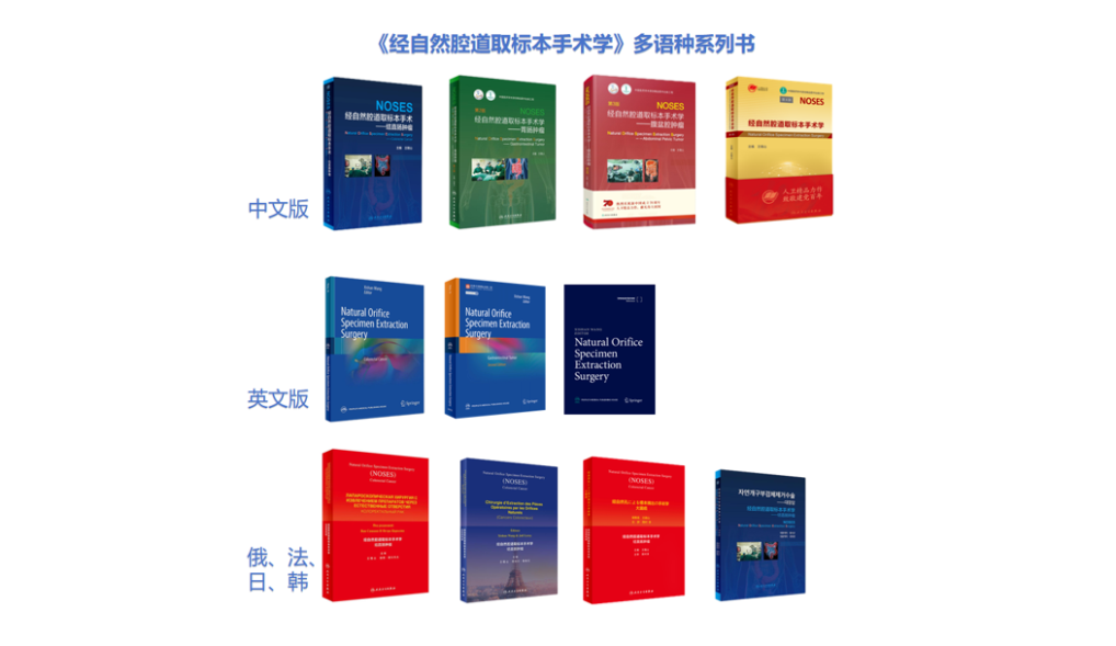 2023年,由人民衛生出版社出版的以中文為主體,英、韓、日、俄、法相配套的五大語種NOSES手術系列專著《經自然腔道取標本手術學》亮相第75屆法蘭克福國際書展,獲多個參展國高度評價。