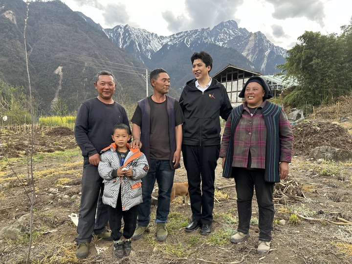 2023年4月3日,劉洪在四川甘孜藏族自治州瀘定縣燕子溝鎮看望慰問“民族團結進家庭”聯誼戶茍玉剛一家。(受訪者供圖)