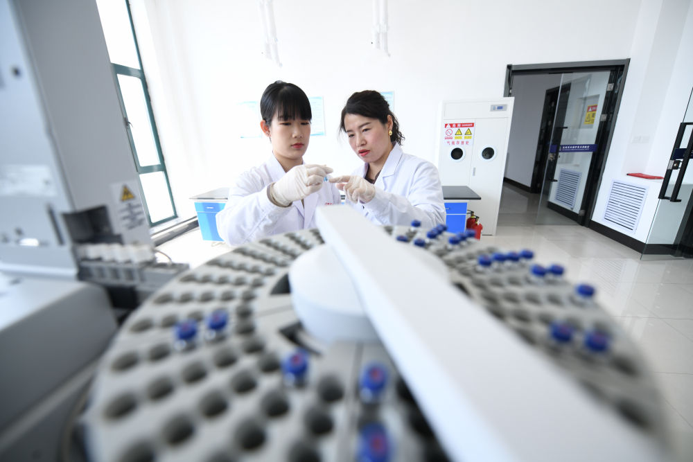 2024年4月3日,在黑龍江北大荒農業股份有限公司友誼分公司黑土地保護實驗室,工作人員在測量土壤有機氯、有機磷農藥殘留數值。新華社記者 王松 攝