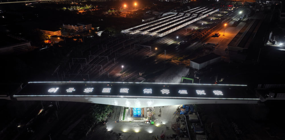 ??谛潞8酆湍细邸岸€口岸”(貨運)集中查驗場所附屬專用通道轉體梁轉體成功(2024年4月3日攝)。新華社發