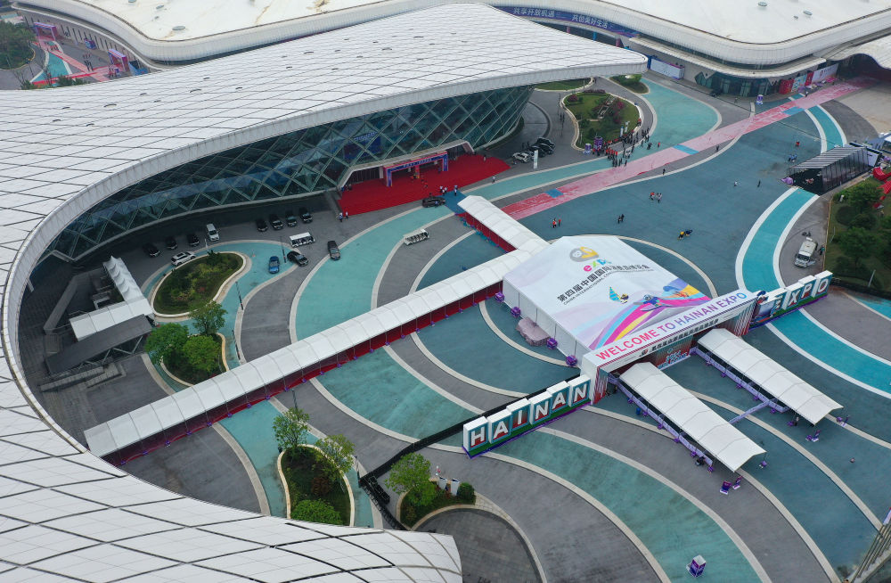 這是2024年4月11日拍攝的第四屆中國國際消費品博覽會主會場海南國際會展中心(無人機照片)。新華社記者 郭程 攝