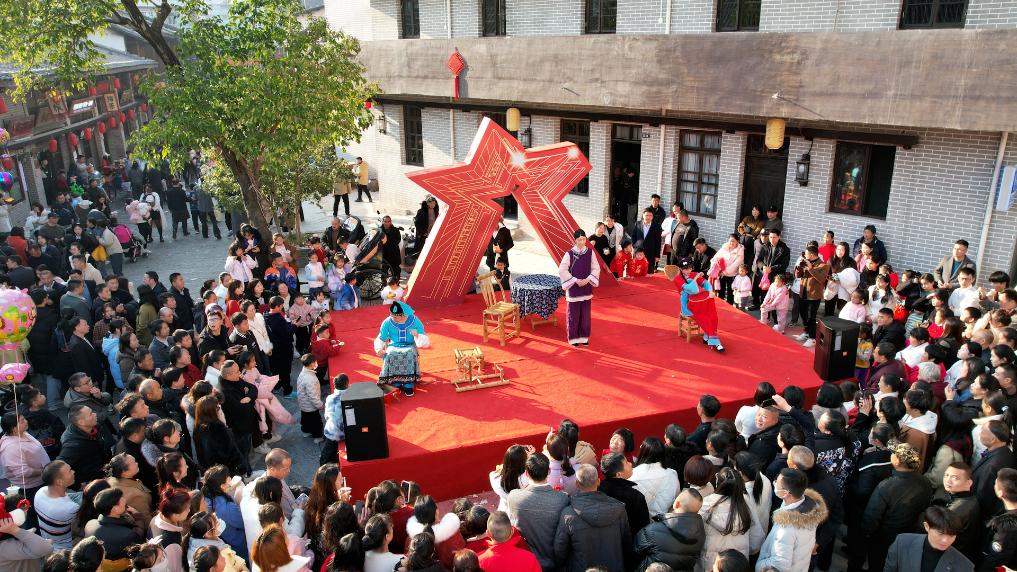 1月2日,瑞金象湖里文化創意街區上演采茶戲。新華社發