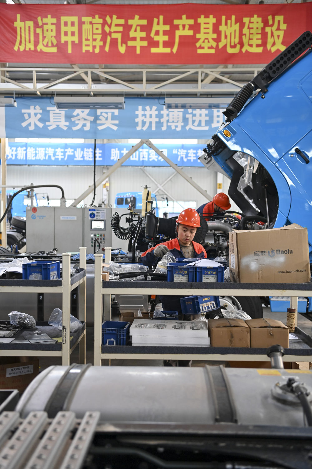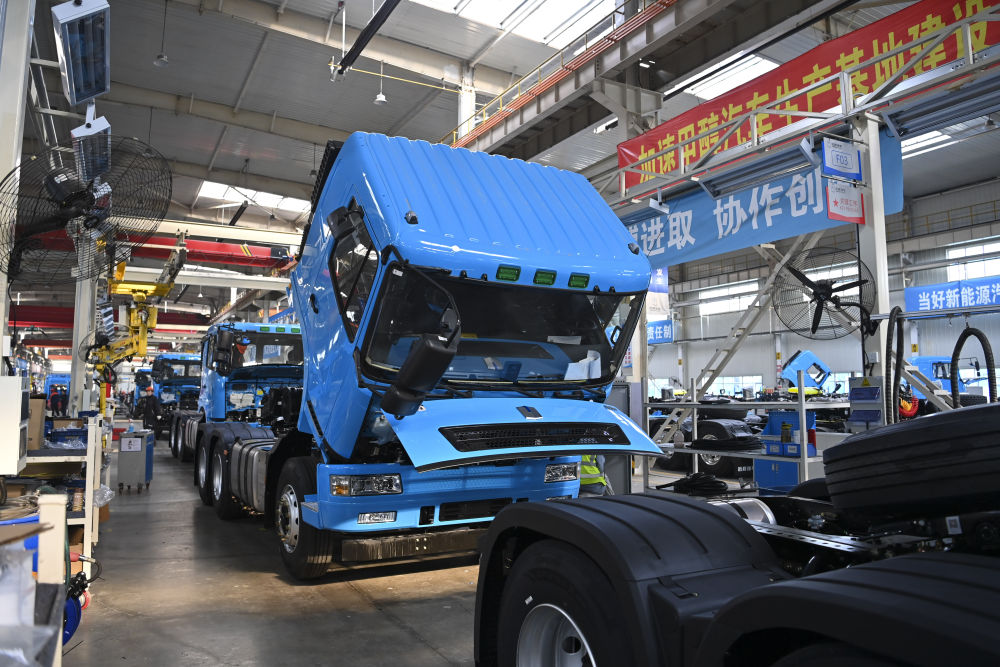 工作人員在位于山西省晉中市榆次區的山西新能源汽車工業有限公司(吉利晉中基地)生產甲醇重卡(4月1日攝)。新華社記者 楊晨光 攝