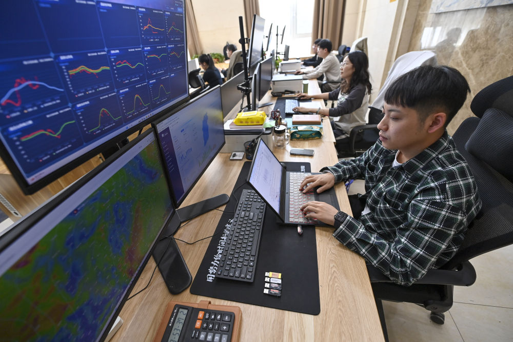 在位于山西省太原市小店區的晉控電力一家公司內,電力交易員正在工作(4月1日攝)。新華社記者 楊晨光 攝