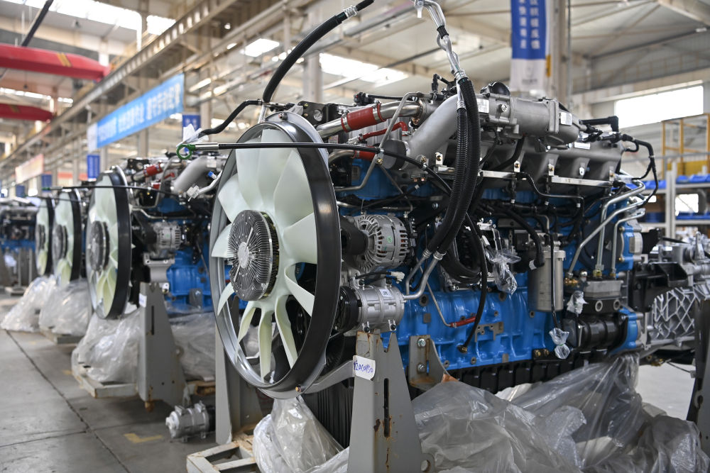 這是在位于山西省晉中市榆次區的山西新能源汽車工業有限公司(吉利晉中基地)拍攝的甲醇發動機(4月1日攝)。新華社記者 楊晨光 攝