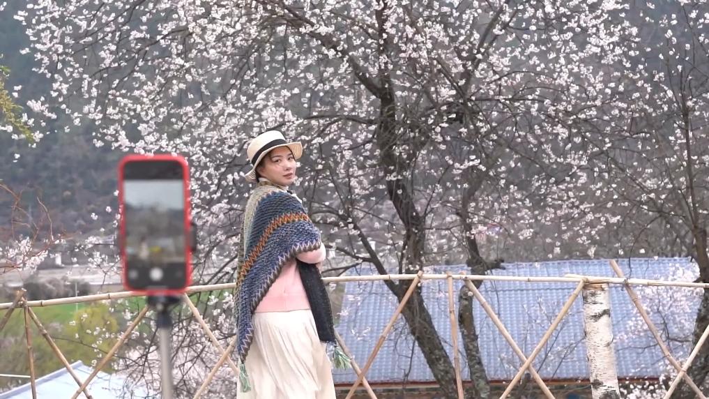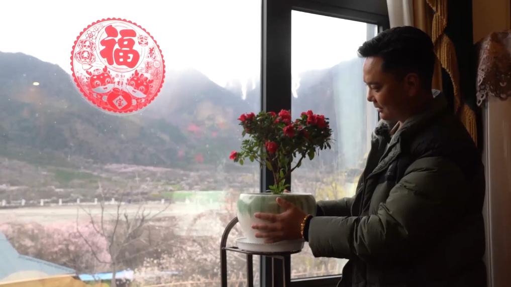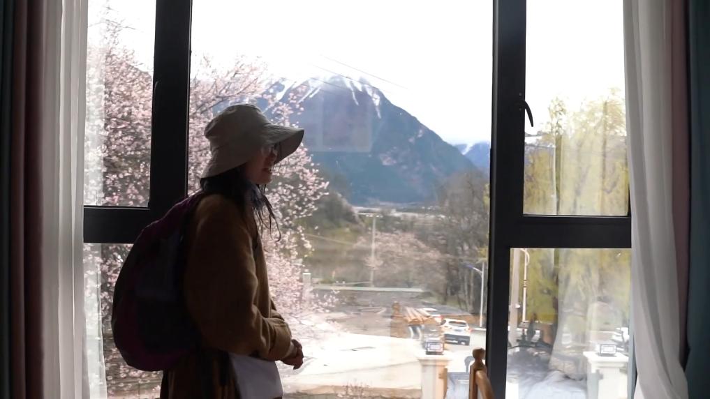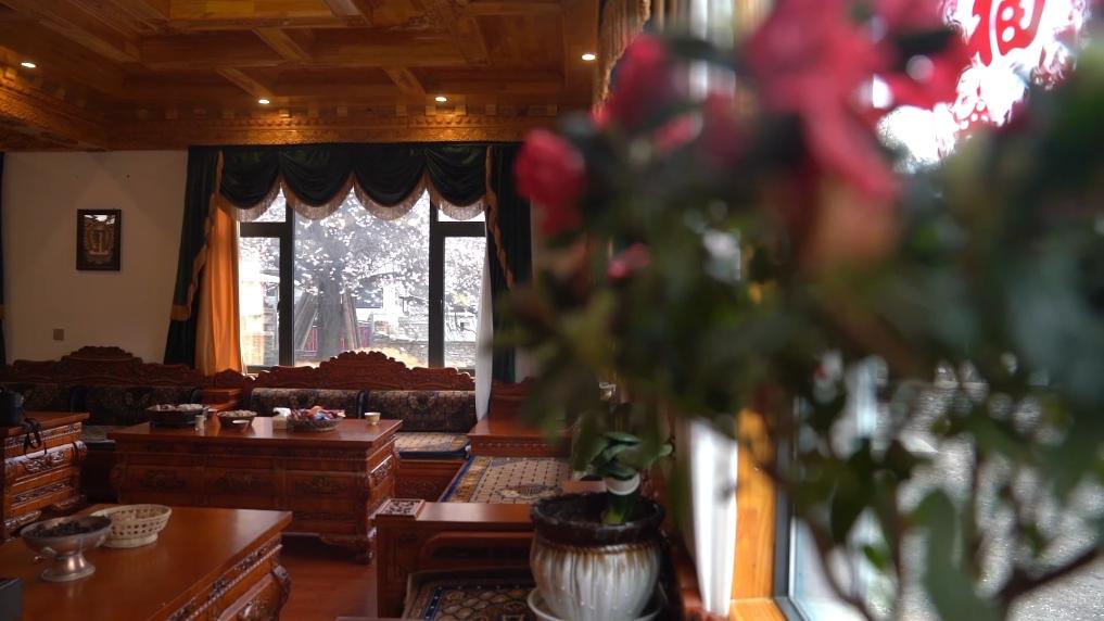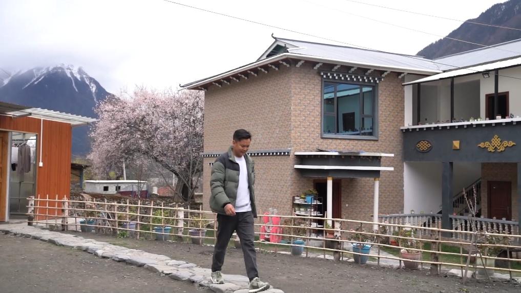 下午4點,林芝市波密縣傾多鎮古通村,遠來的游客入住到村民洛松頓珠開辦的民宿。寬敞的客廳里,藏式家具整齊大氣,窗外古老的桃花樹隨風散落著陣陣花雨。