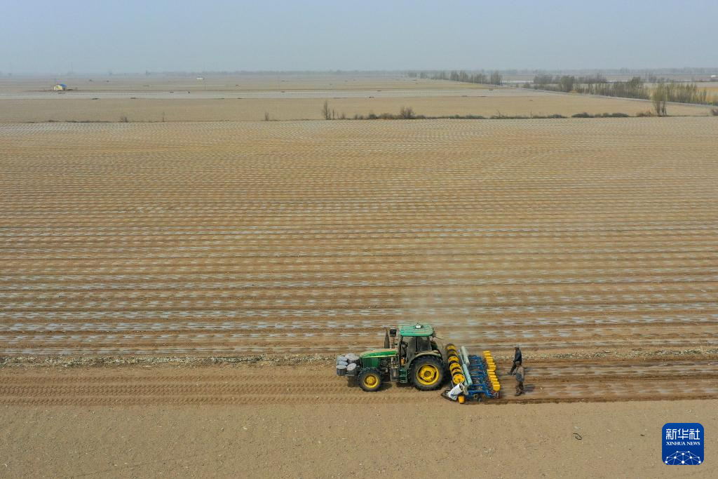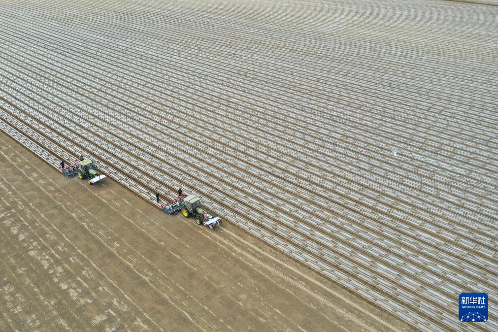 目前,我國棉花主產區新疆正迎來棉花春播高峰期。走進新疆生產建設兵團第五師雙河市九〇團,處處可見拖拉機牽引著棉花播種機緩緩向前的場景,順著田地盡頭望去,遠處山脈輪廓依稀可見。