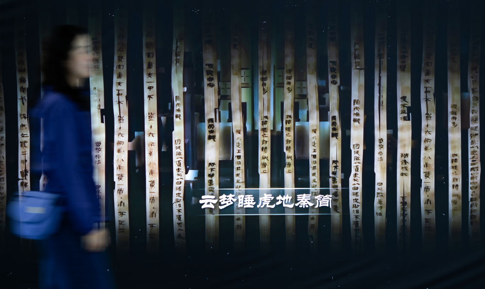 2024年4月15日,參觀者在云夢縣博物館睡虎地秦簡展廳參觀。新華社記者 肖藝九 攝