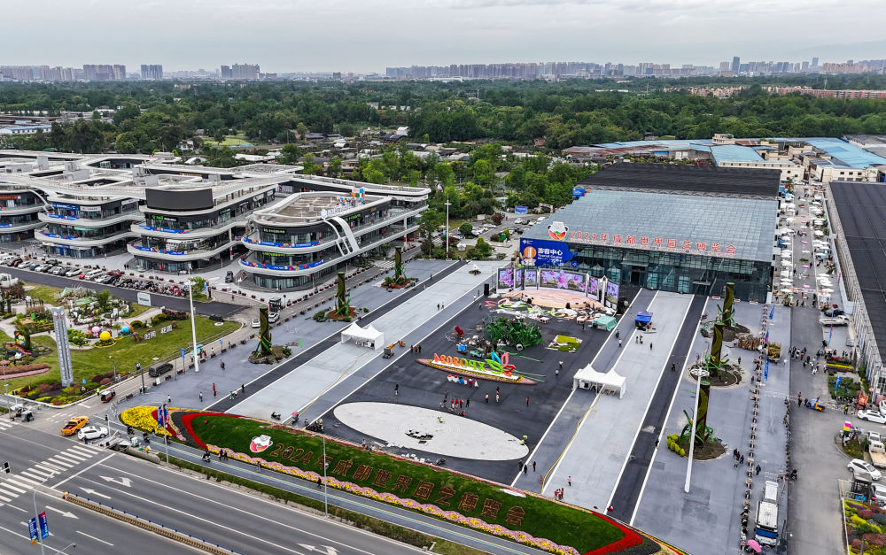 窗含千秋,門泊萬里。從空中俯瞰,2024年成都世界園藝博覽會主會場如同一朵盛放的芙蓉花,迎接世界各方賓朋。
