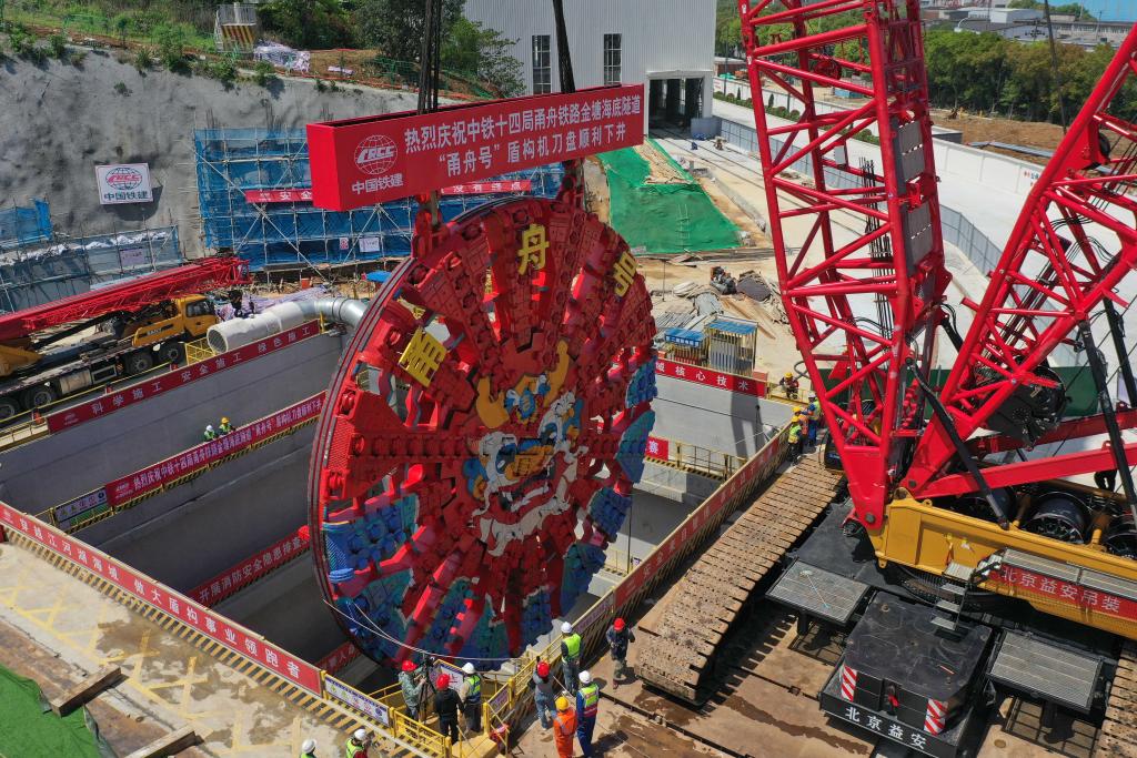 直徑14.57米、長135米、總重量4350噸——不久前下線的超大直徑盾構機“定海號”“甬舟號”,如同兩條巨大的“地下蛟龍”,正在世界最長海底高鐵隧道——寧波至舟山鐵路金塘海底隧道安裝調試,完成后將于5月份從隧道兩端相向施工、掘地穿海。