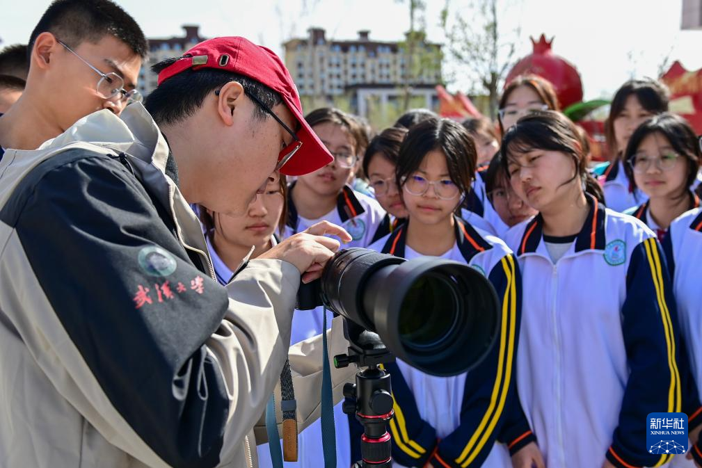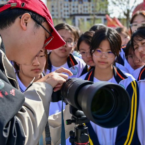 在新疆雙河市高級中學,第25屆支教團成員王仡柯(前)給同學們上攝影選修課(4月11日攝)。新華社記者 丁磊 攝