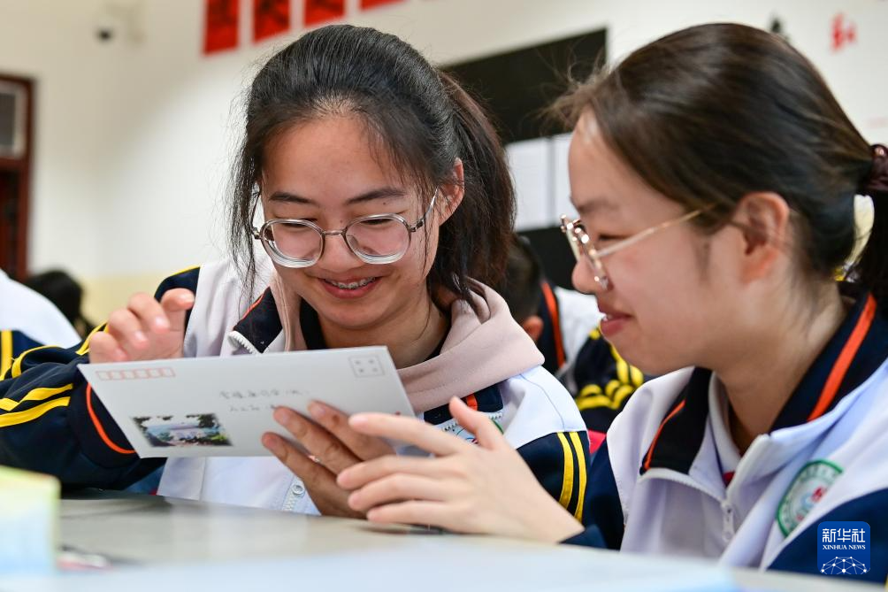 在新疆雙河市高級中學,學生收到“山水知行”書信陪伴計劃的回信(4月12日攝)。新華社記者 丁磊 攝