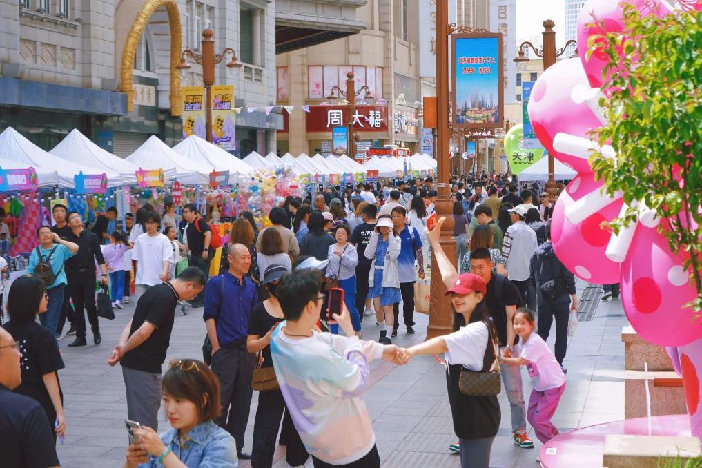 “五一”假期,天津金街商圈人頭攢動。(受訪者供圖)