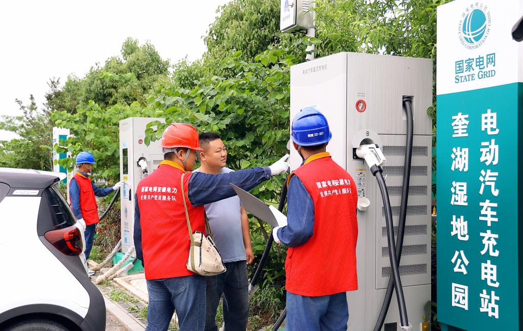 新華社合肥5月5日電(記者吳慧珺、賈稀荃)近日,在新投運的安徽南陵奎湖省級濕地公園電動汽車充電站,國網南陵縣供電公司營銷部主任葉良帶領團隊,一邊與前來充電的電動汽車主溝通填寫充電體驗問卷,一邊核對著現場設備和環境信息,為充電站擴建方案收集最新資料。