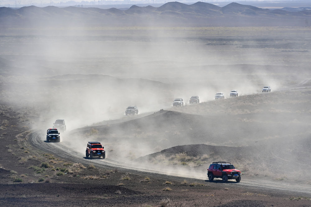 新疆克拉瑪依市烏爾禾區,正午時分,隨著一聲發令槍響,130余輛越野車和20余輛摩托車引擎轟鳴,從世界魔鬼城景區達喀爾1號大本營飛馳而出,開啟冒險之旅。