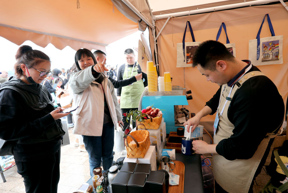 2024年5月1日,2024上海國際咖啡文化節在上海徐匯濱江拉開帷幕,這是咖啡店的工作人員(右)在活動現場制作咖啡。新華社記者 方喆 攝