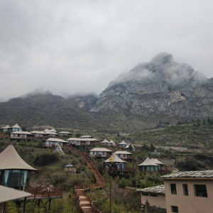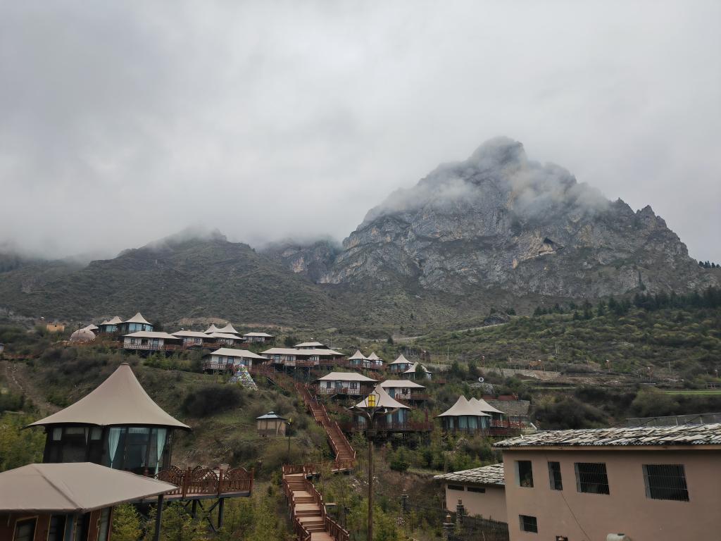 從道杰東主的民宿繼續往上走,有一間“云境野舍帳篷酒店”,一棟棟如同帳篷般的獨立房間依山而建。