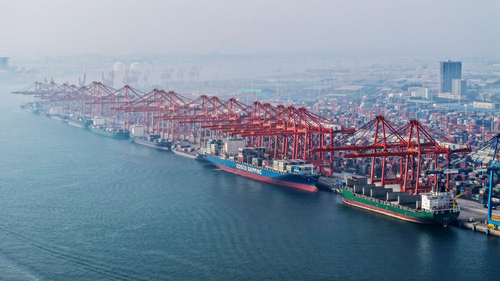在廣西欽州港碼頭,多艘海輪在排隊卸貨(無人機照片,2024年3月28日攝)。新華社記者 張愛林 攝