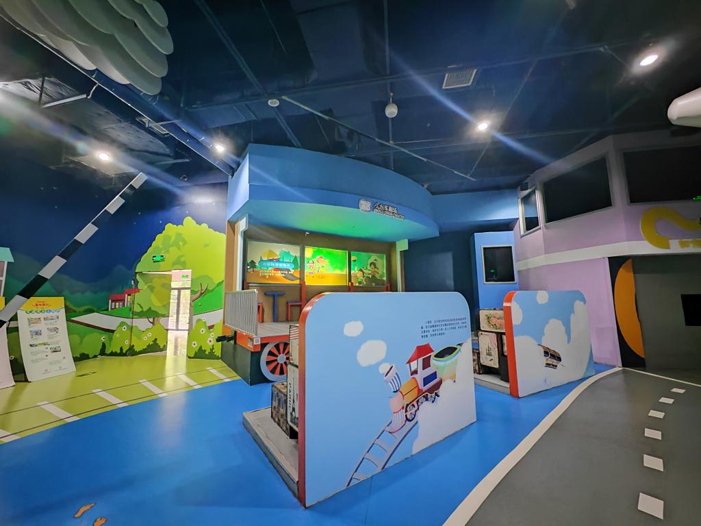 在兒童體驗區,夸張的卡通造型、萌味十足的布景,趣味性強的多媒體互動平臺等營造出一個由安全降落、小火車劇場、報警急救中心等組成的模擬安全社區與安全街道,小朋友在快樂的玩耍中,得以了解日常生活中存在的危險,培養自我保護意識。