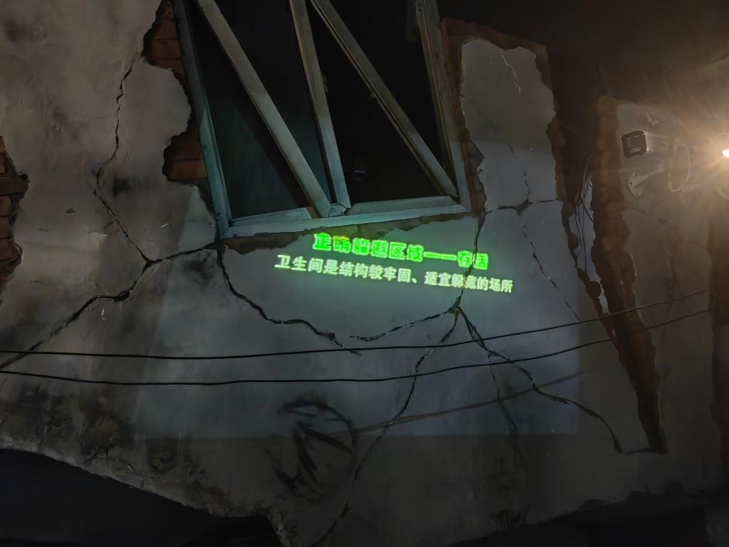 在四川省防災減災教育館的模擬街道處,可以看到逼真的震后模擬場景。新華社記者 張海磊 攝