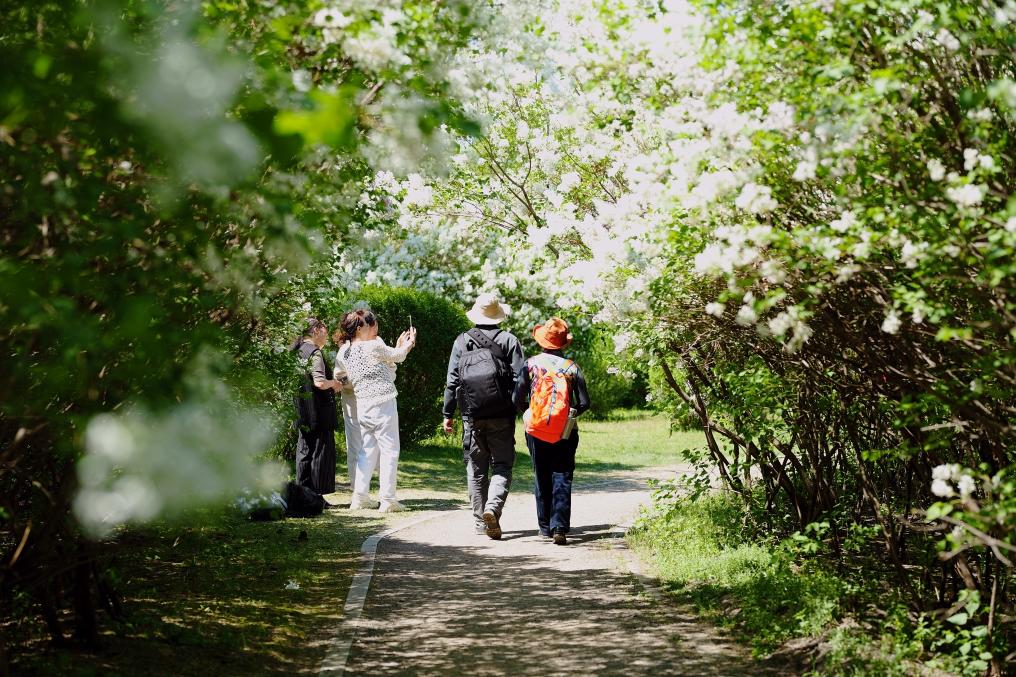紫丁香、歐丁香、白丁香……丁香公園內有30余種丁香品種。每當從花繁葉茂的樹旁走過,總會有淡淡花香輕拂肩頭,讓人忍不住流連駐足,再深吸一口氣,想要盡可能地留住這抹香。