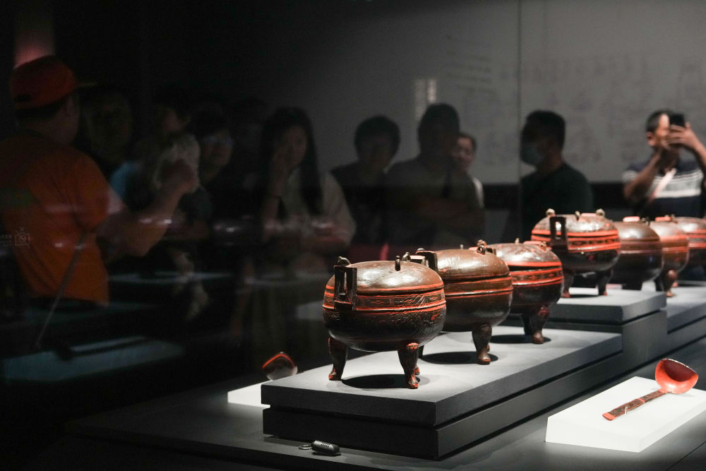 2024年5月16日,游客在湖南博物院長沙馬王堆漢墓陳列展廳觀賞漆木器。新華社記者 薛宇舸 攝