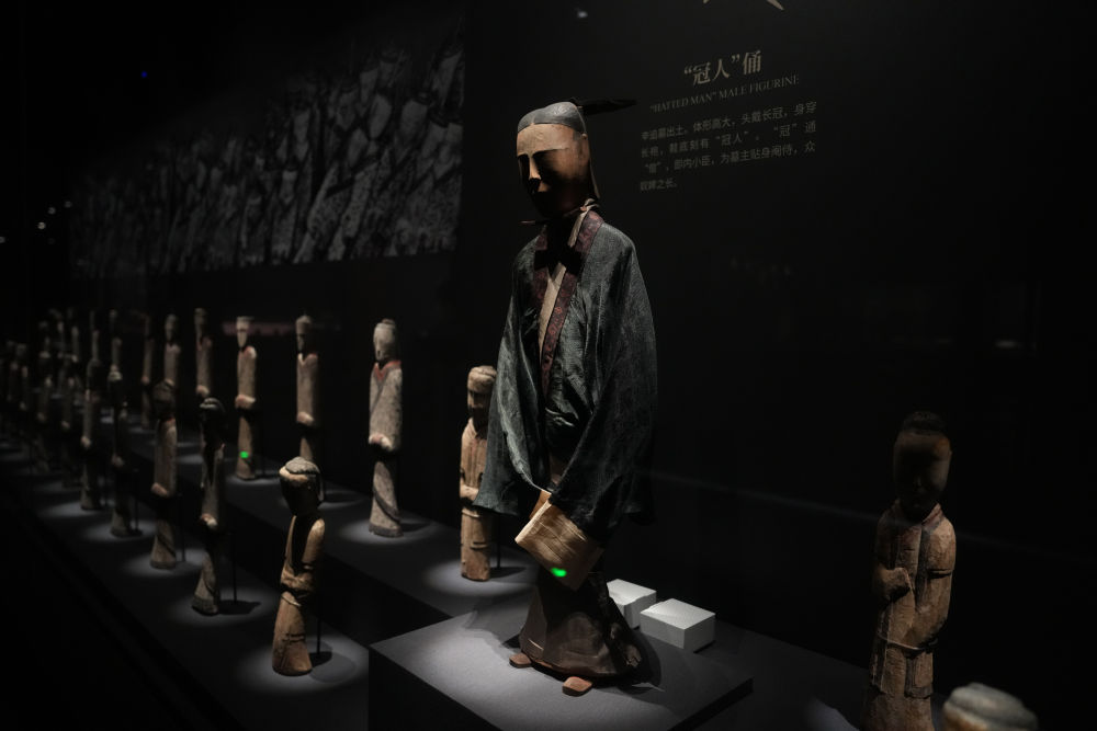 這是2024年5月13日在湖南博物院長沙馬王堆漢墓陳列展廳拍攝的木俑。新華社記者 薛宇舸 攝