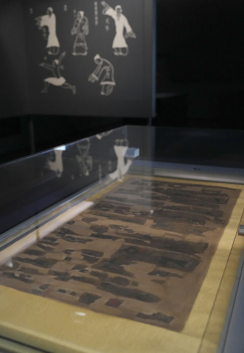 這是2024年5月13日在湖南博物院長沙馬王堆漢墓陳列展廳拍攝的《導引圖》。新華社記者 薛宇舸 攝
