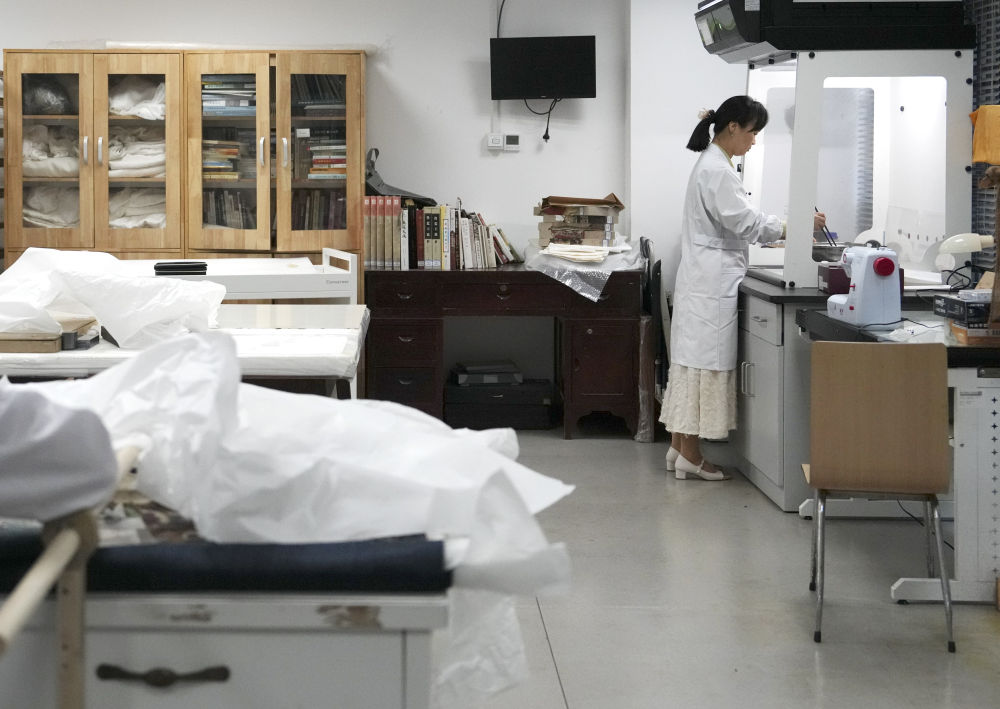 2024年5月13日,湖南博物院藏品保護中心副主任董鮮艷在工作。新華社記者 薛宇舸 攝
