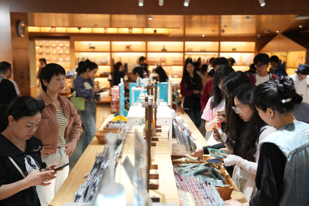 2024年5月16日,游客在湖南博物院選購文創產品。新華社記者 薛宇舸 攝