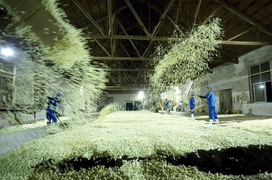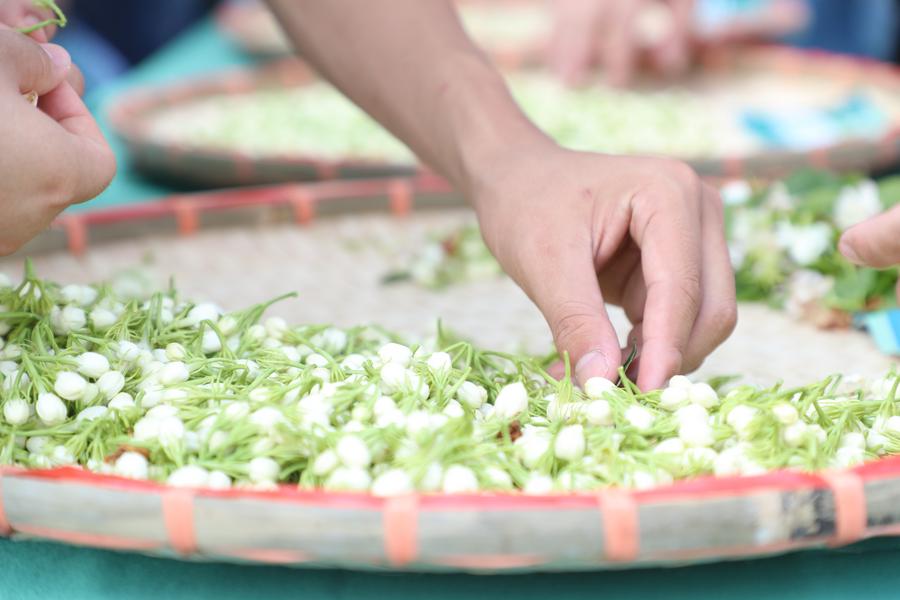 窨制工藝將茉莉花香融入茶中。(新華社發)吳其英 攝