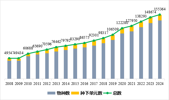 《中國生物物種名錄》2024版共收錄物種141484個,種下單元13880個,較2023版新增6423個物種和267個種下單元。其中,動物界昆蟲綱鞘翅目新增3275個物種,成為新收錄物種數量最多的類群。