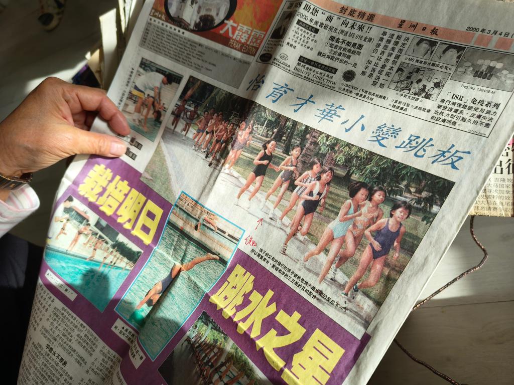 當地華文報紙報道周希洋《栽培明日跳水之星》,圖中箭頭所指的就是張俊虹和隊友們進行跑步訓練