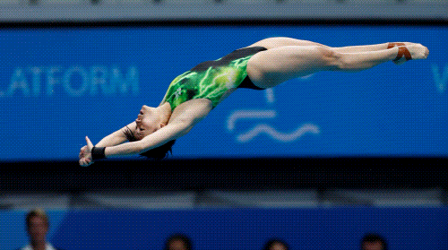 2017年布達佩斯游泳世錦賽,張俊虹奪得女子10米臺冠軍。新華社記者丁旭、龔兵攝