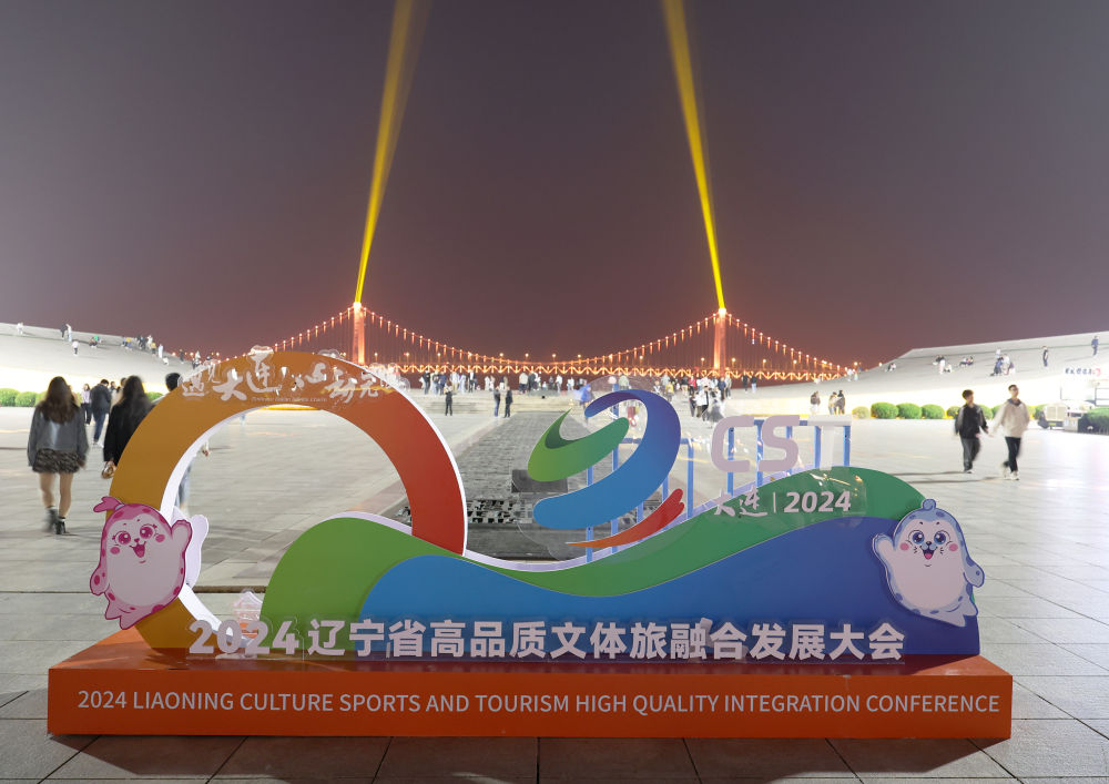 這是在遼寧省大連市星海廣場拍攝的“2024遼寧省高品質文體旅融合發展大會”的展板(2024年5月23日攝)。新華社記者 李鋼 攝