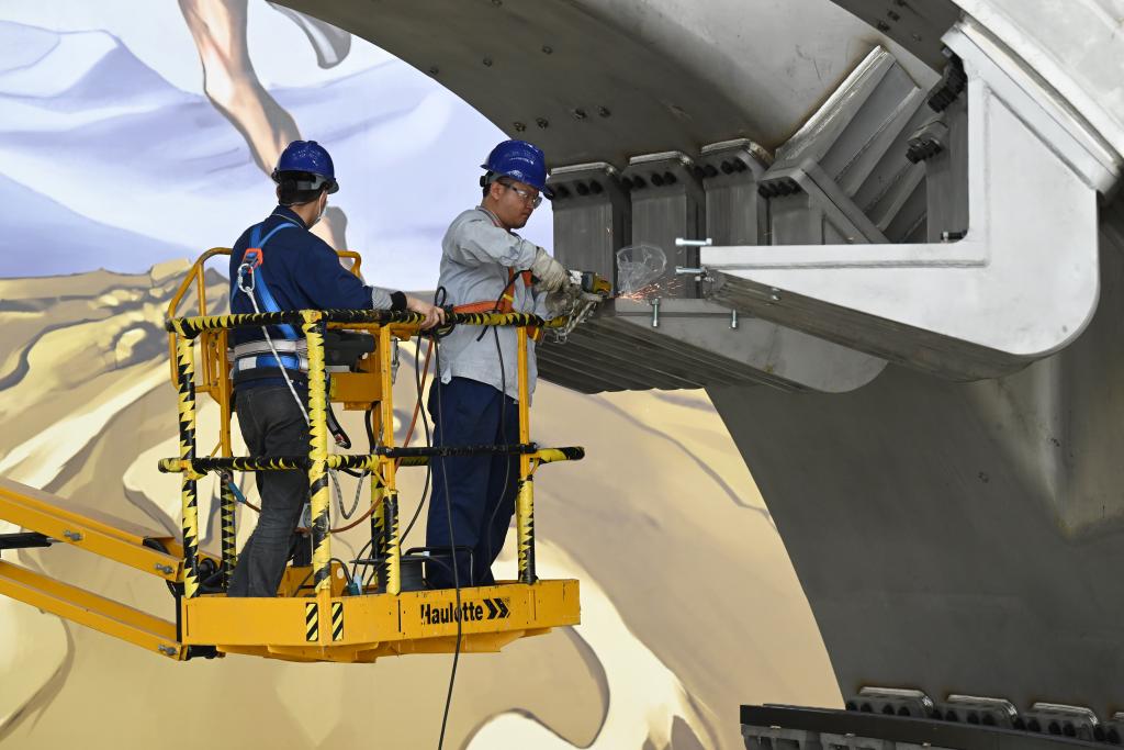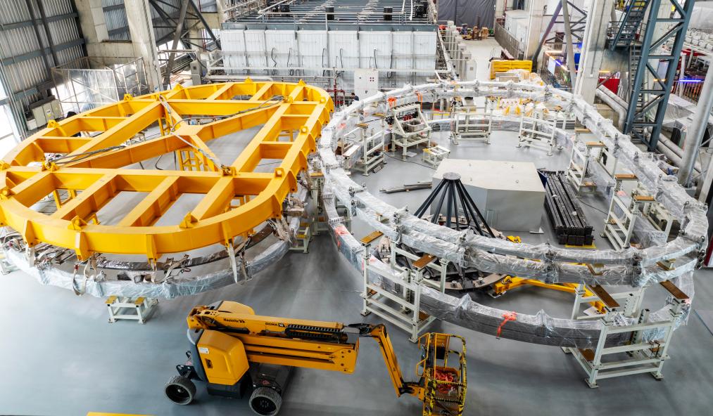 4月25日,工作人員在搭建聚變堆主機關鍵系統綜合研究設施(CRAFT)1/8真空室及總體安裝實驗平臺。 新華社記者 周牧 攝