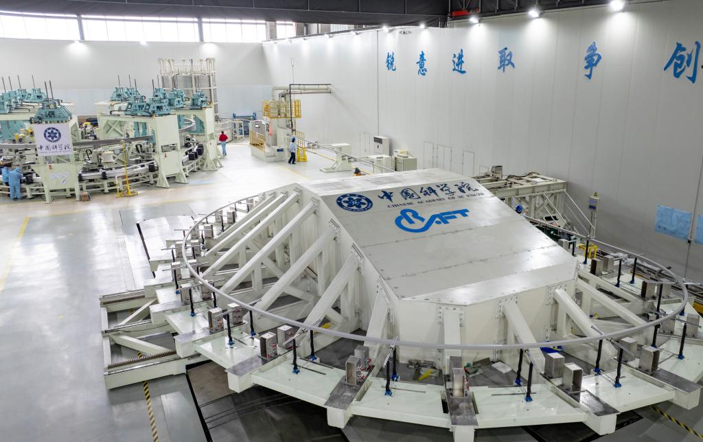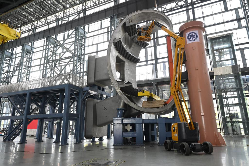 5月27日拍攝的建設中的聚變堆主機關鍵系統綜合研究設施(CRAFT)1/8真空室及總體安裝實驗平臺。新華社記者 劉軍喜 攝