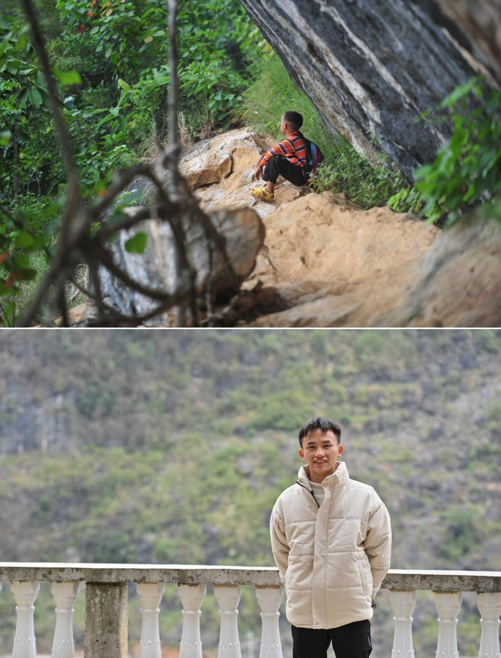 拼版照片:下圖為2023年1月16日,在河池市大化瑤族自治縣板升鄉弄雷村,即將從技校畢業的蒙科佑站在家門口;上圖為2012年9月5日,在大化瑤族自治縣板升鄉弄雷村,10歲的蒙科佑在上學途中,坐在懸崖邊上休息。22歲的蒙科佑,希望能掙錢供弟弟妹妹讀書,讓他們接受更好的教育。