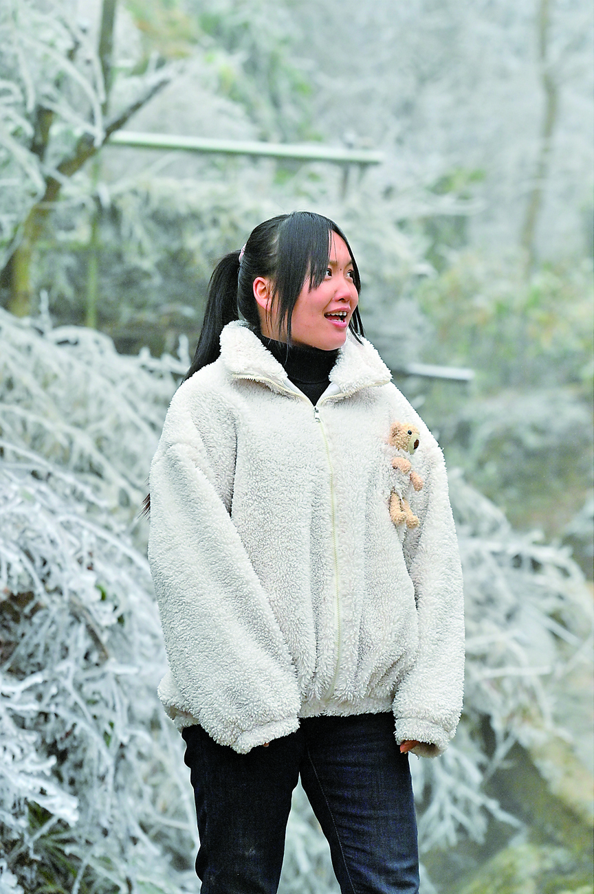 結冰的山路很滑,下坡時,鳳艷萍試圖抓住路邊的雜草,但覆冰的雜草也很滑,一不小心,整個人就滑到坡底,還好人沒受傷。