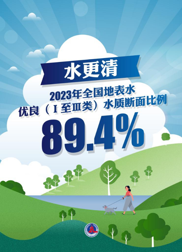 水更清——全國地表水優良(Ⅰ至Ⅲ類)水質斷面比例為89.4%;