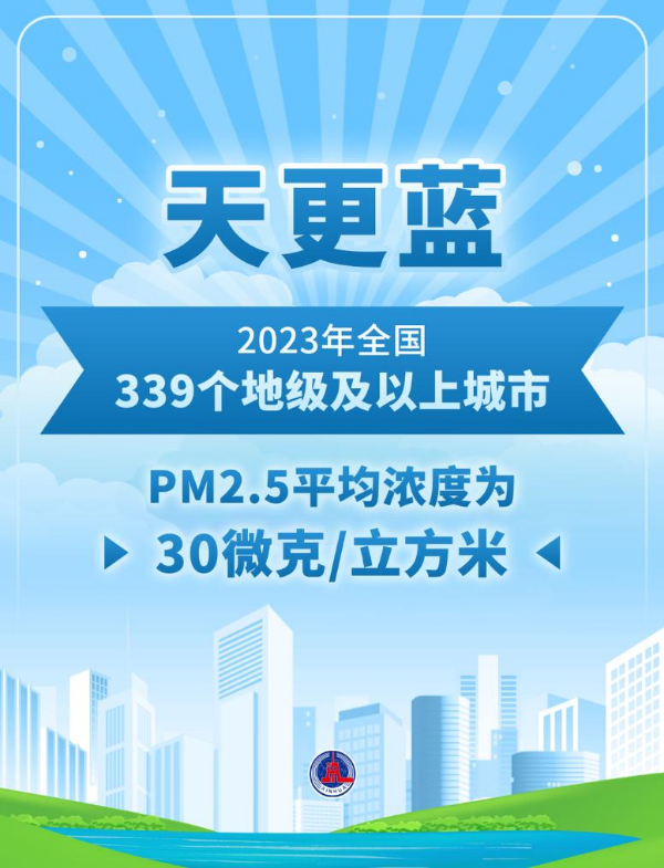 天更藍——全國339個地級及以上城市PM2.5平均濃度為30微克/立方米;