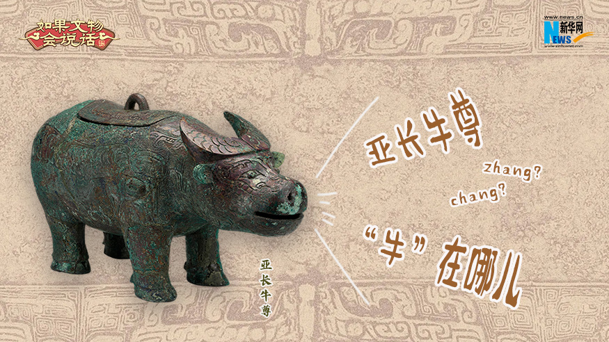 亞長牛尊,2001年1月于河南安陽殷墟花園莊東地54號墓出土,是迄今為止安陽殷墟發現的唯一一件牛形青銅尊。牛的腹部兩側雕有老虎紋飾,牛身上還有鳥、魚、夔龍等20多種動物紋飾。亞長牛尊無論是整體造型還是紋飾雕刻都堪稱青銅藝術的精品。它不僅展示了殷商晚期精湛的青銅鑄造工藝水平,也反映了古代人們的信仰、審美和生活方式。