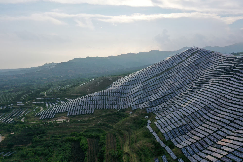 這是在山西省芮城縣學張鄉拍攝的光伏電站(無人機照片,2023年7月12日攝)。新華社記者 詹彥 攝