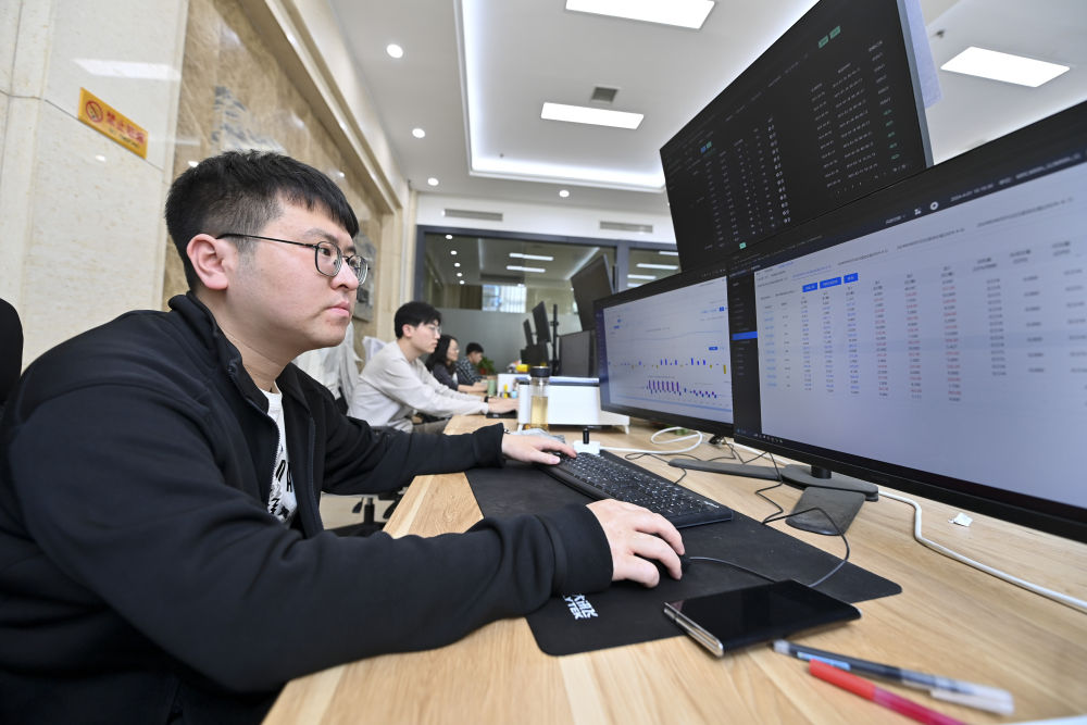 在山西省太原市小店區,晉控電力的電力交易員在電腦前工作(2024年4月1日攝)。新華社記者 楊晨光 攝