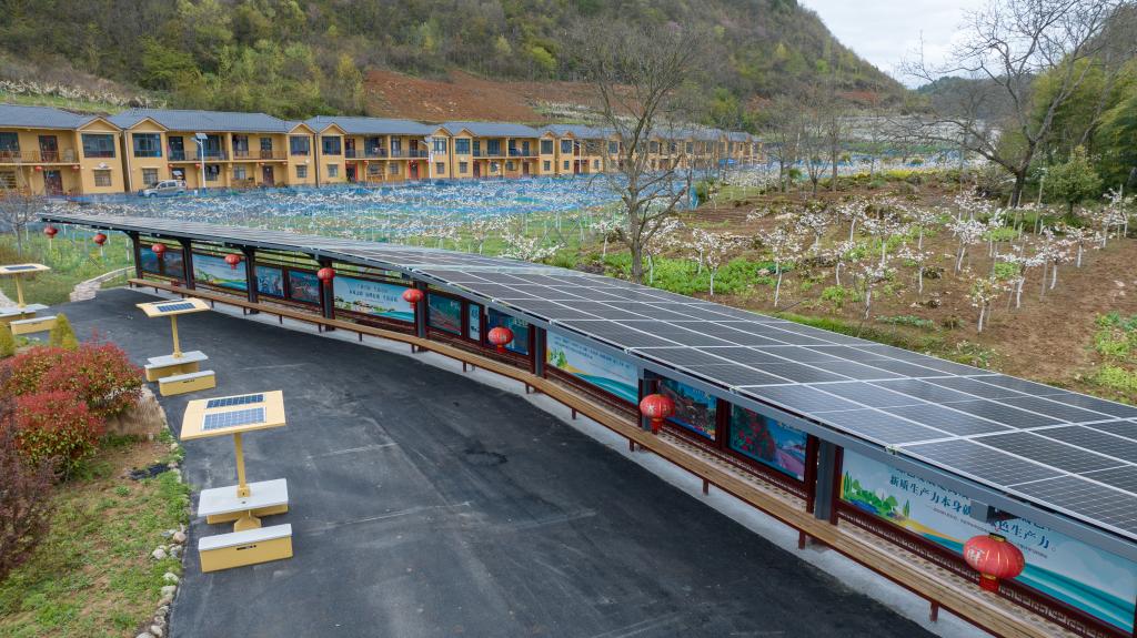“這個桌子很特別,可以給手機無線充電……”幾天前,到湖北省恩施州巴東縣信陵鎮土店子村游玩的游客楊蘭發現,村里美食街長廊一旁的幾套桌椅安裝有光伏板,長廊頂部也都安裝有光伏板。